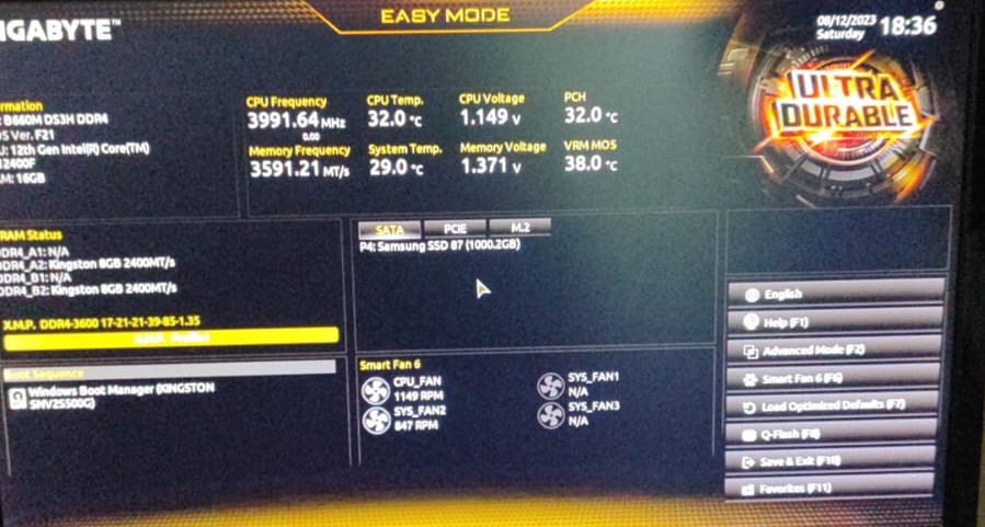 Meine neue interne SSD Karte "Samsung SSD 870 QVO 1TB" wird außerhalb des BIOS einfach nicht erkannt.