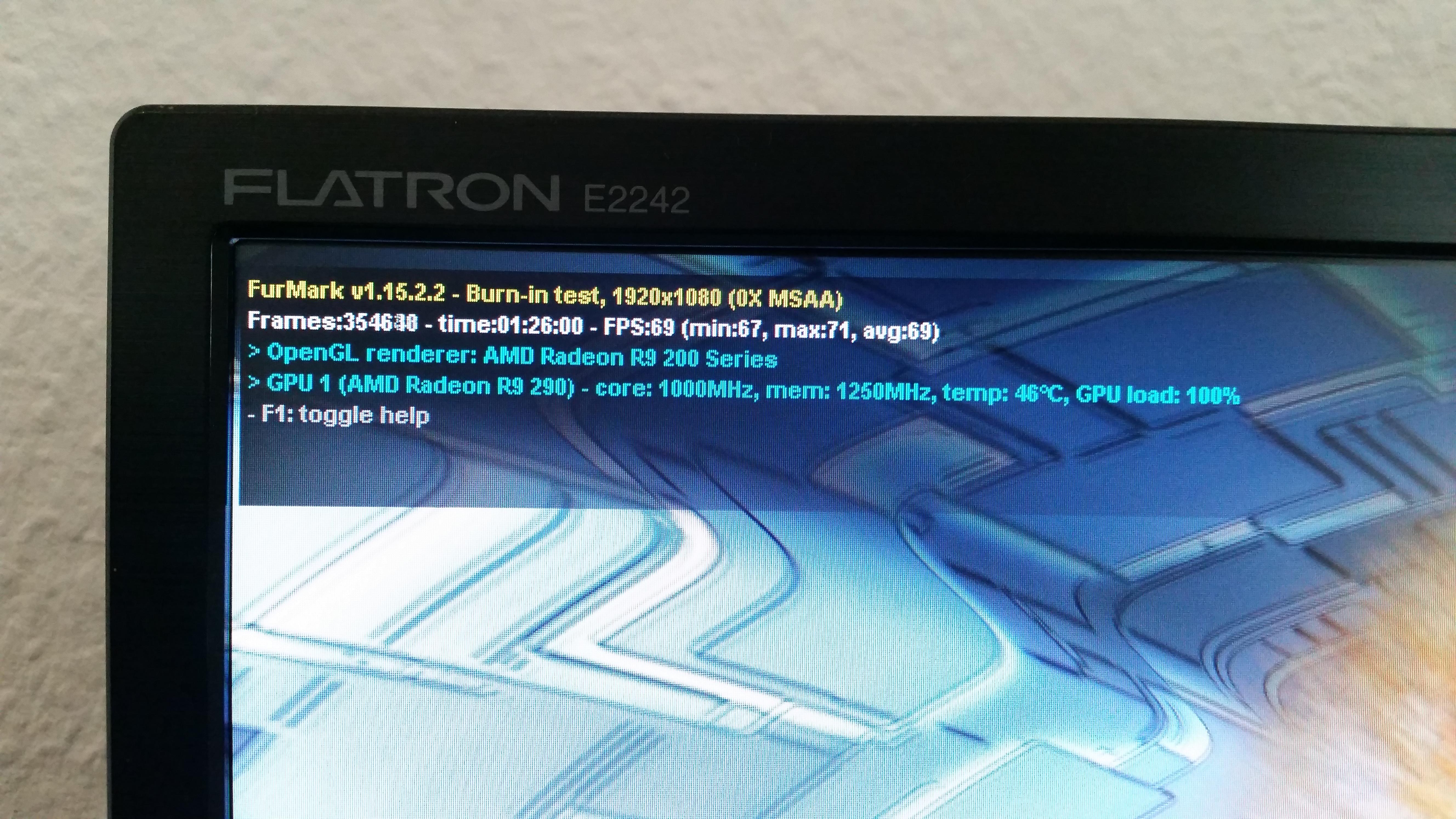 FurMark 1.15.2.2 GPU Stresstest @ 1920x1080 Fullscreen 30 Min = 50°C genau. CPU bleibt bei 38°C dabei.
