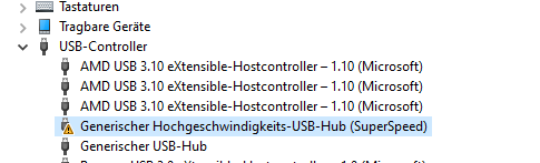 Ich habe dann mal in den Geräte Manager geguckt und das mal mit 2 anderen USB Ports die ich noch in der Front habe verglichen. Wenn ich eine Festplatte dran mache koppelt die ganz normal an, wenn ich die dann auswerfe, kommt da so ein Ausrufezeichen bei Generischer Hochgeschwindikeits USB Hub und normalerweise sobald ich die Festplatte dann ab mache, also vom USB, aktualisiert der sich wieder und das Ausrufezeichen verschwindet, also bei den 2 anderen Ports (So ist es normal und dann kann man auch wieder eine Platte dran machen und die wird erkannt...