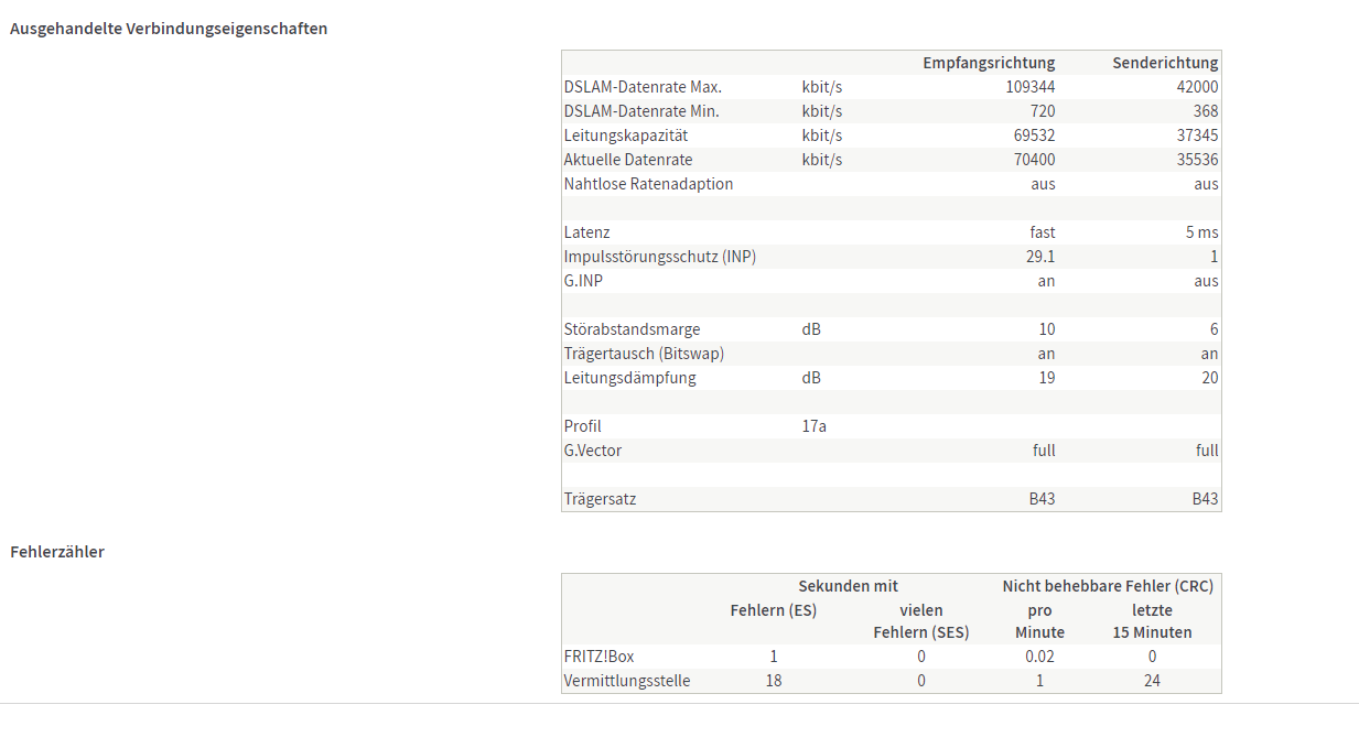 Hallo ich hab das Problem das meine Leitung mehrmals am Tag abbricht bzw. Sync verliert. Vielleicht weiss ja einer von euch woran das liegen könnte ?. Ich hab Vdsl 100K und eine Fritzbox 7390 im Einsatz und ich hänge euch mal die Leitungswerte usw an. Danke Lg Patrik