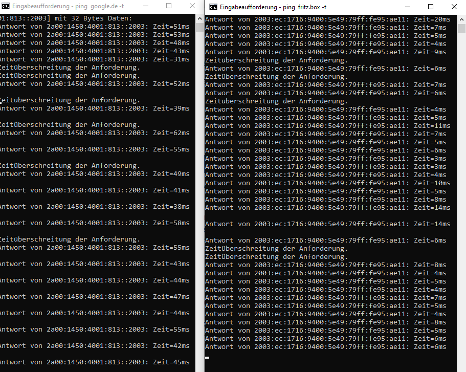 Seit 2 Tagen, wenn ich den PC anmache, habe ich Abbrüche und Paketverluste. Das geht 15-20 Minuten und ab und an bricht das Internet komplett ab.
