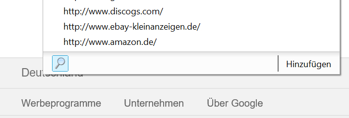 habe Windows 10 und den IE11. Seit kurzem ist unter meiner Adressleiste eine Suchleiste mit einem Lupensymbol (wenn man den Mauszeiger draufhält erscheint der Name "Bing", rechts ist ein Feld wo steht "Hinzufügen" (Suchanbieter hinzufügen)