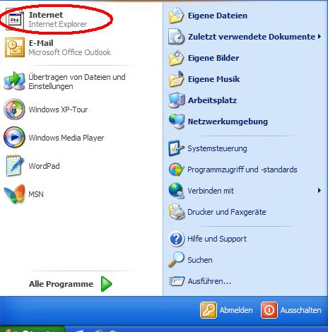 Internet Explorer 7 Symbol im Startmenü fehlt