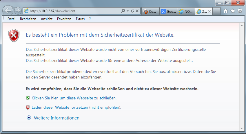 Internet Explorer 9 - Problem mit Sicherheitszertifikat