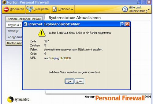 Internet Explorer Skriptfehler i.V.m. Norton Firewall
