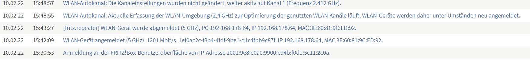 Kannst du diese kurzen Abbrüche mit Logeinträgen in der Fritzbox in Zusammenhang bringen? Sprich: bricht das Internet genau dann zusammen, wenn die Box einen Radar Scan oder sowas macht?McFloriii schrieb:so sah das bei dem Speedtest von Ookla aus, als mein Internet kurz weg war.