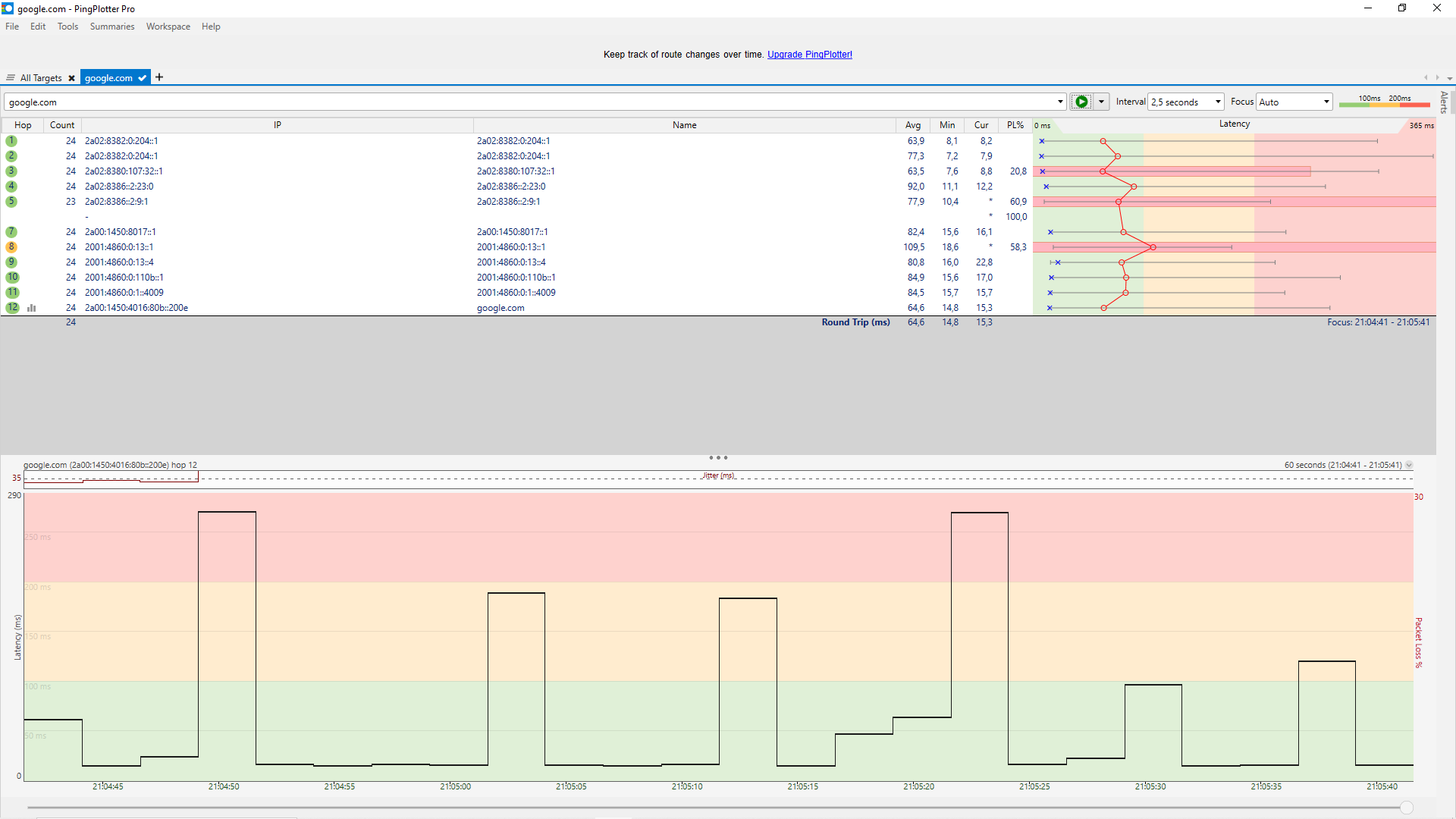 Bei den IPs sind ist mir nichts aufgefallen, das den Ping verschlechtern könnte. Alle Ips waren entweder von Google oder vom Provider selber.