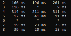 Ich habe mit CMD den Tracert command auf google.de gemacht und bei mir ist das (siehe Bild!) rausgekommen.