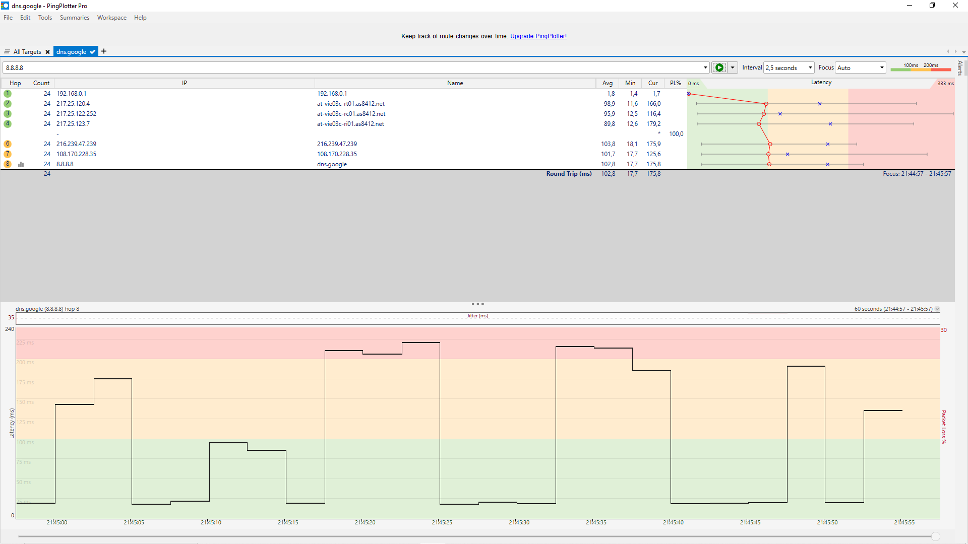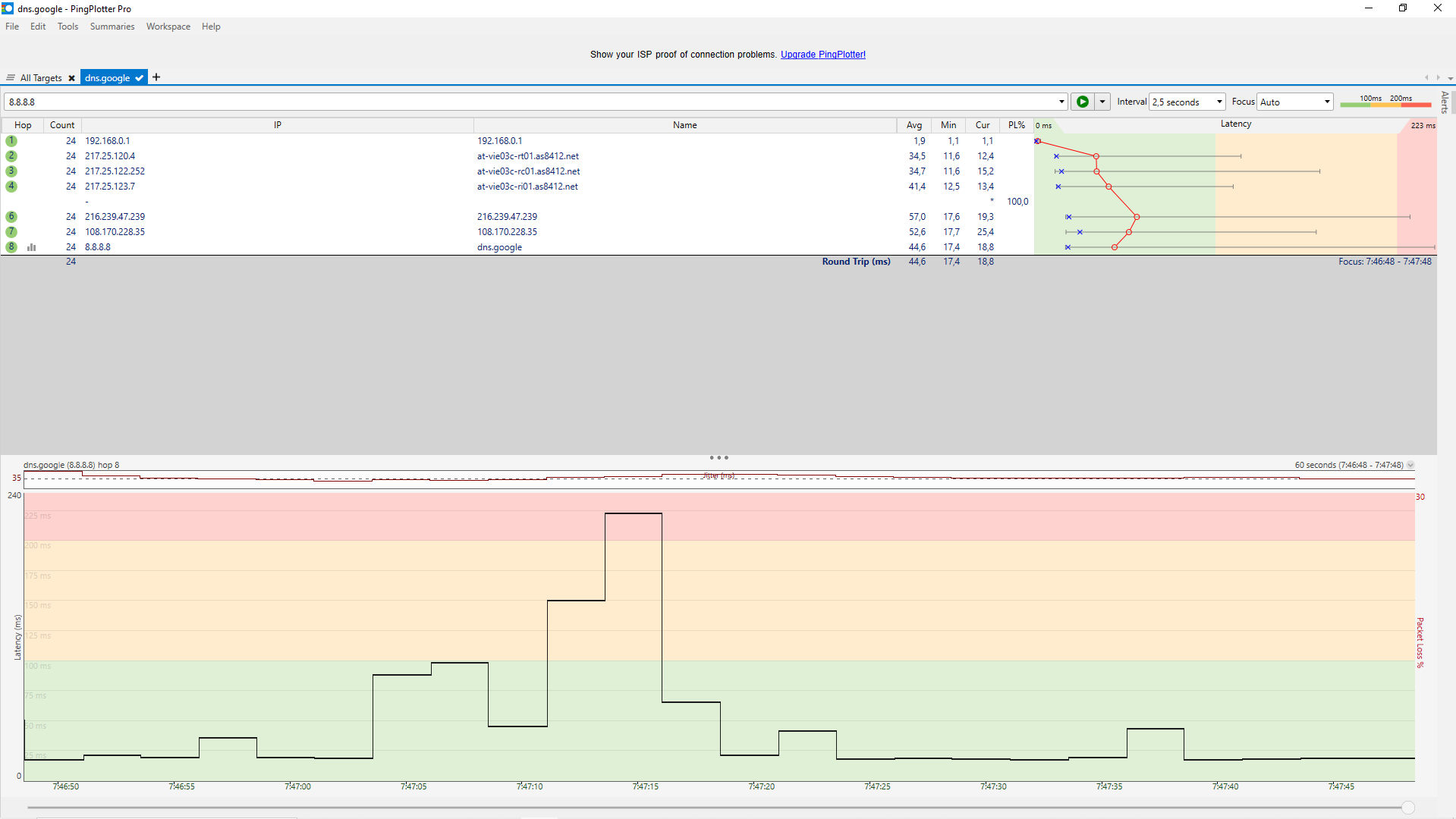 Ich habe auch gerade eben die Pingplotter Tests durchgeführt und wollte diese euch zeigen.
