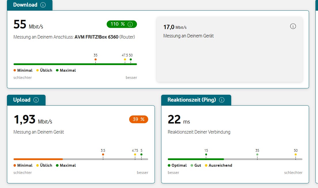 Scheint ein uralter Kabel Internet Vertrag zu sein, bis auf den Upload scheint die Geschwindigkeit ok zu sein, aber es sollte vielleicht auch mal jemand diese Steinzeit Fritzbox tauschen xD