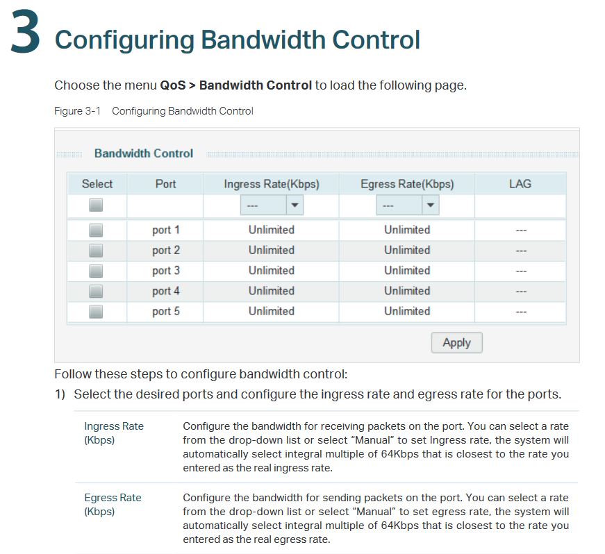 Ich habe nun einen Switch gefunden, welcher Bandwidth Control mit punktgenauer Einstellung pro LAN-Port bietet. Für WLAN würde ich dahinter einen AP anschließen. Mein Problem ist dabei aber, dass hierbei auch der interne Traffic limitiert würde. Ich möchte aber ja nur den Traffic ins WAN limitieren.