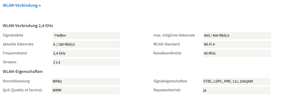 Heute nen Stromausfall gehabt welcher sich Negativ auf mein Mesh ausgewirkt hat. Zur Situation: Mein Zimmer ist im Obersten Stockwerk, ROuter in der MItte und Powerlan ist nicht möglich weshalb ich mich für ein MEsh system über 2 Repeater den 2400 und 450e entschieden habe. Über den 450 bin ich dann über Lan ans Internet(Pc hat kein WLan) angeschlossen.(das Blaue Symbol ist beim 450e nicht da aufgrund dessen das ich den Screenschot zu voreilig genommen habe ändert jedoch nichts am Problem). Von Maximalen 250 mbit konnte ich dadurch hier immer stabile 150 mbits erreichen und download Zeiten waren auch angenehm. Seit dem Stromausfall heute ist dies leider nicht mehr so. Wie im bild zu erkennen ist gibt der 450e nur noch Geschwindigkeiten von 4 bis 10 mbits ab und Games etc. sind somit unspiel bar, von downloads will man da schon kaum reden. Ich habe alles Versucht was mir Möglich ist von Neustarten zu neu EInrichten etc. hat alles nichts Gebracht.