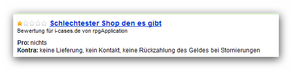 Mittlerweile finde ich den Shop nicht mal mehr unter idealo und Geizhals, sonst würden die dort ihr Fett auch noch weg kriegen.