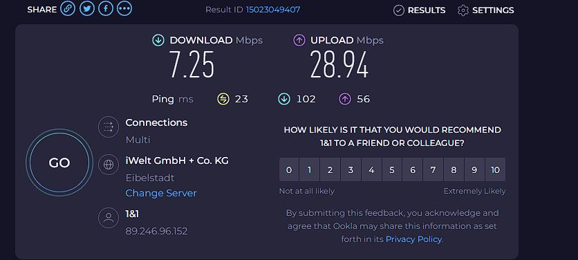 Ich habe die Situation mit drei verschiedenen Fritzboxen probiert und bei allen tritt das gleiche aus, somit muss es, denke ich, an dem PC liegen. Das Problem tritt sowohl auf, wenn der PC mit WLAN (über eine USB-Wlan-Antenne) angeschlossen ist oder über das Kabel direkt an der Fritzbox hängt. Mit 1&1 habe ich telefoniert, die meinten von ihrer Seite sei alles okay, sie haben jetzt zum Probieren eine neue Fritzbox gesandt, halte aber für unwahrscheinlich, dass dieses Problem durch die Box verursacht wird (ich habe es ja mit zwei anderen probiert).
