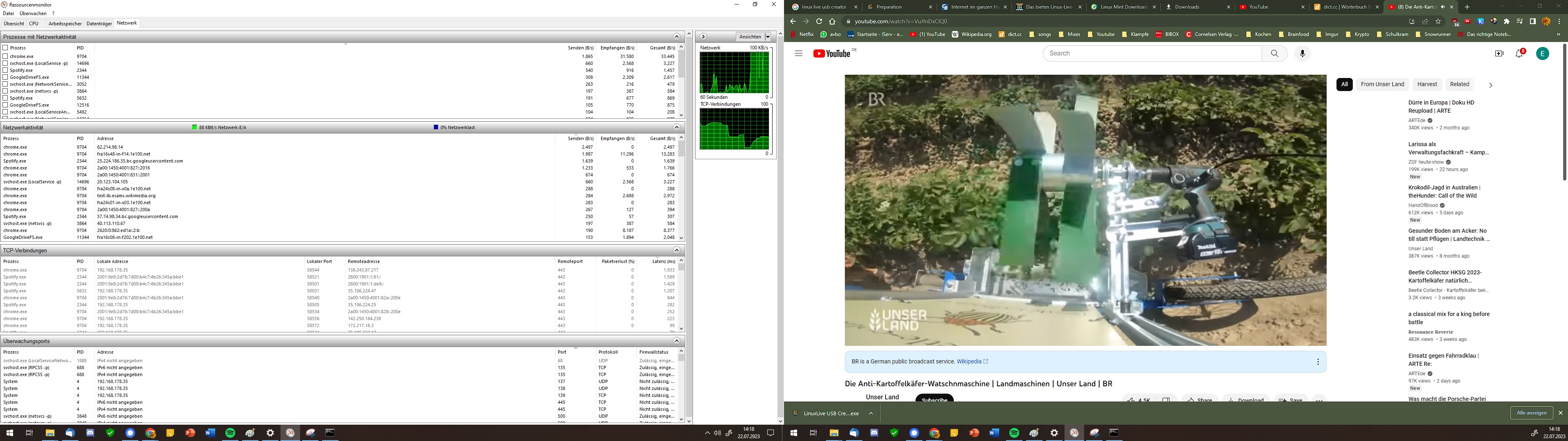 Ich habe ein Bildschirmvideo aufgenommen, eventuell bringt das was. Gegen Ende habe ich angefangen, verschiedene Seiten aufzurufen, das erklärt die Spikes dann. Hilft das weiter?