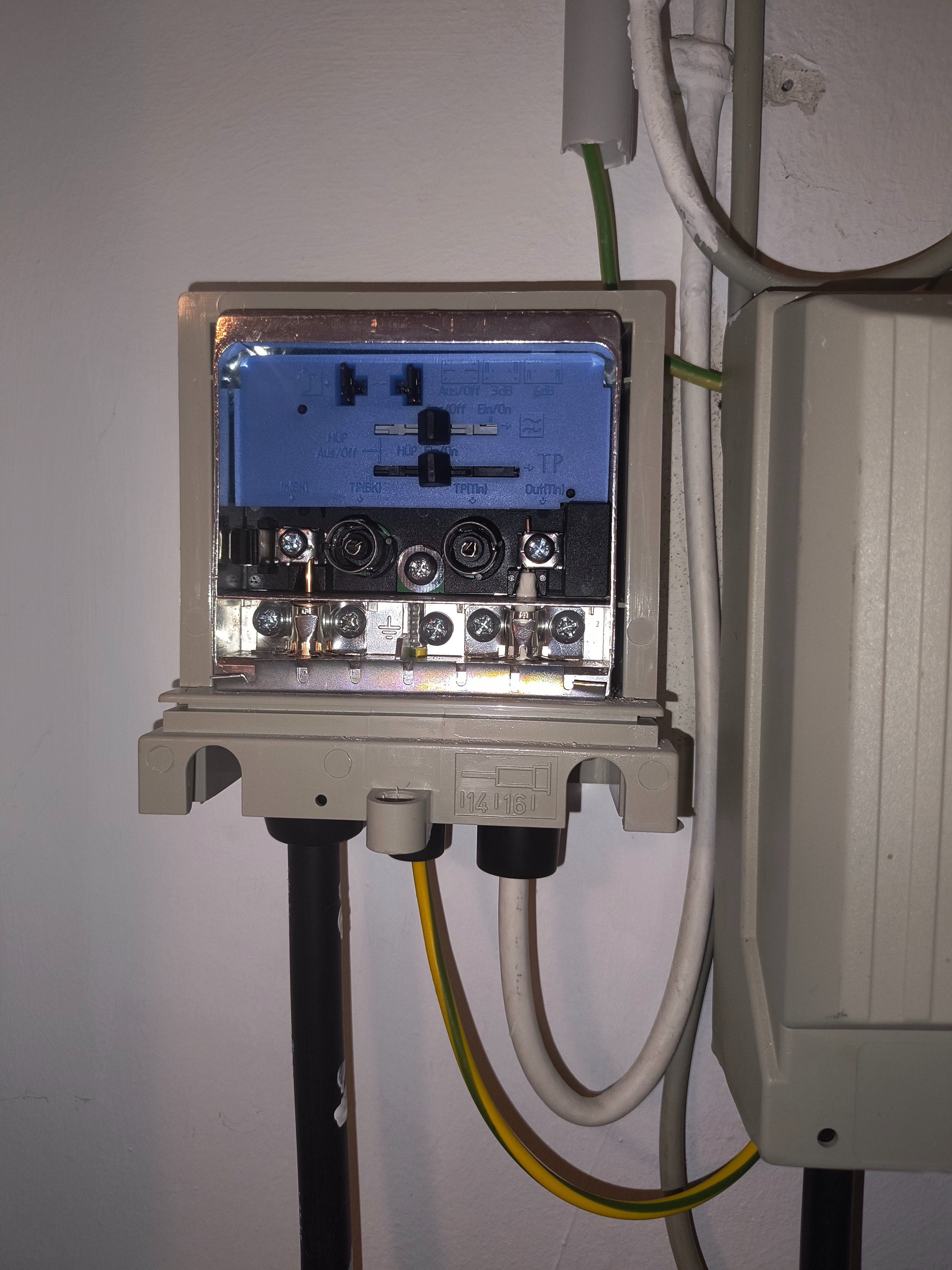 Der Switch wird mit dem Router verbunden entweder mit Patchkabel oder mit dem angeschlossenem Verlegekabel im EG über die Dose, dort auch mit Patchkabel.