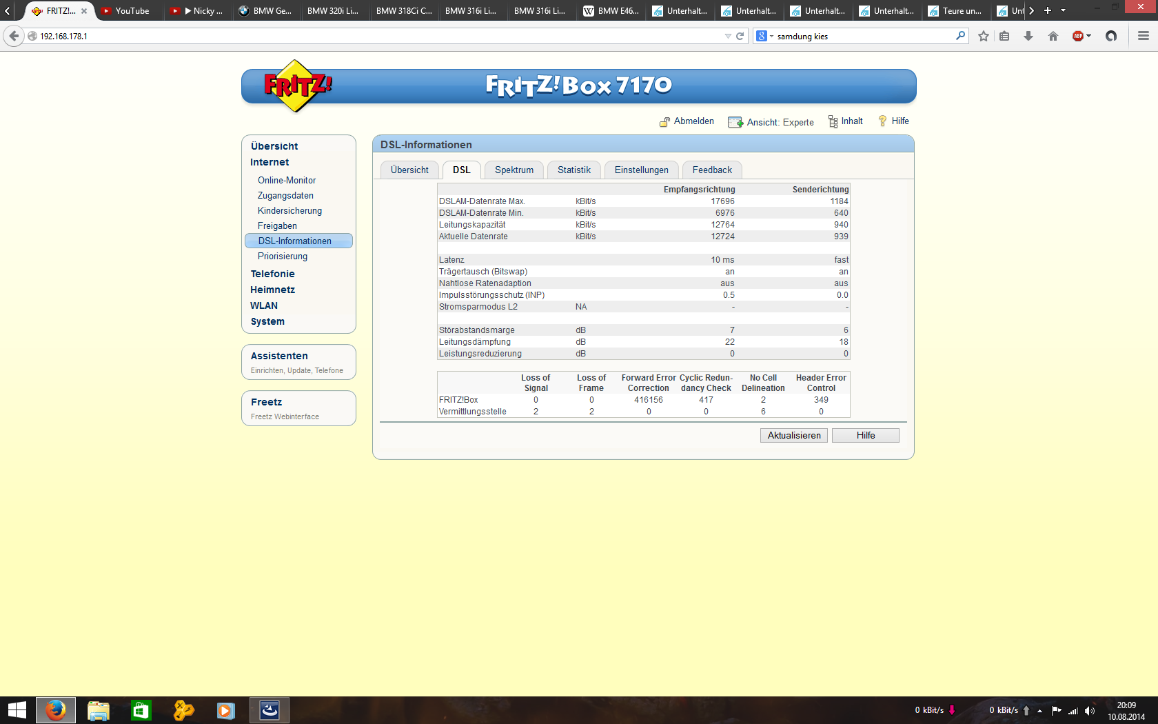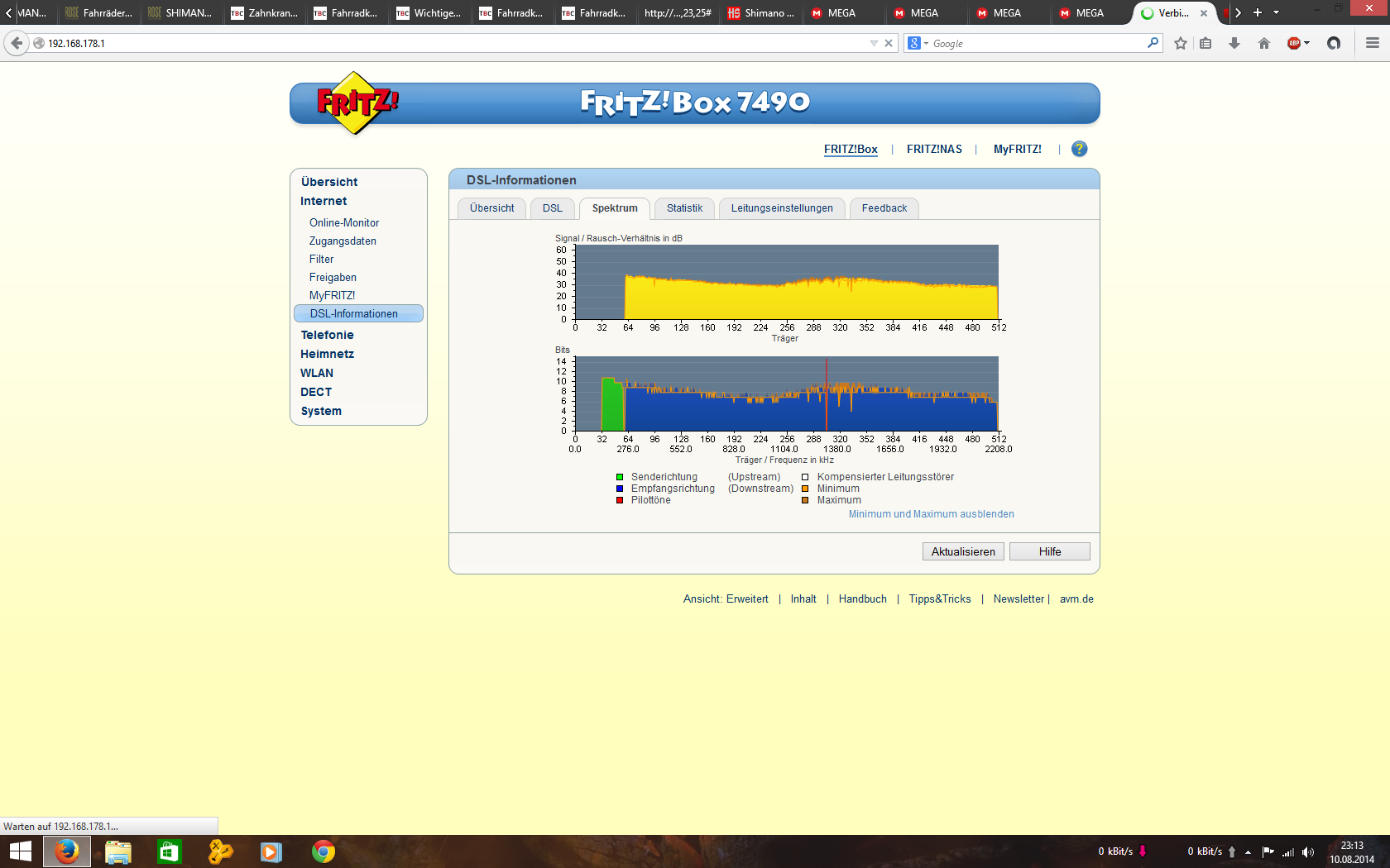 Ja wurde gemacht, der Technicker meinte 13k Stabil und er kann keine CRC Fehler sehen und auch keine schwankungen Wobei das Problem ist ja wie in der Tabelle zu sehen ist liegt das Problem nur Nachts vor.