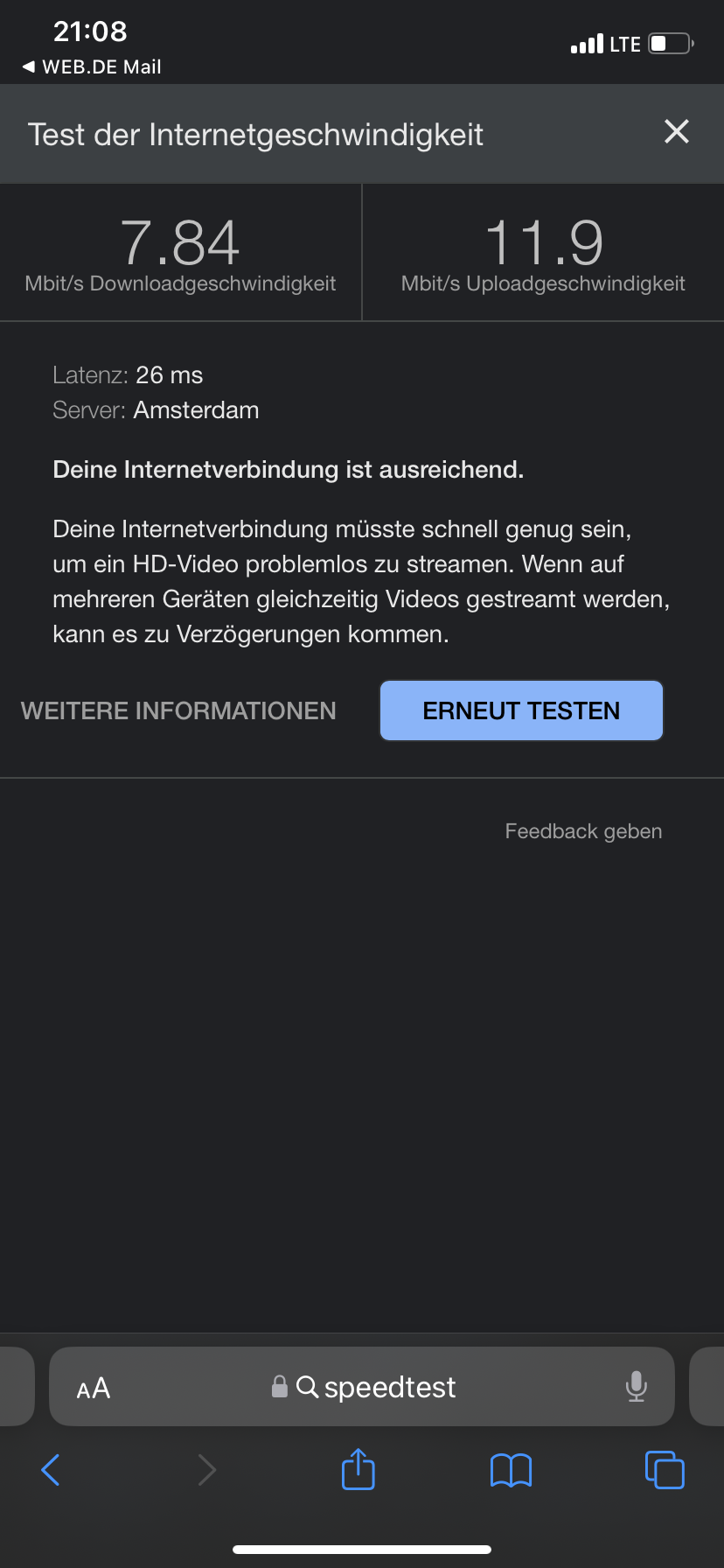 Und trotz sehr hoher stabiler Download und Upload werte. Beim 2,4 ghz sind es knapp 105Mbits/40mbits.