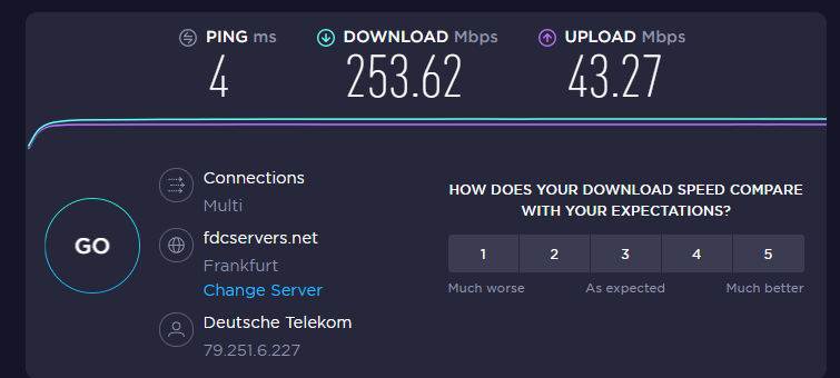 Alle anderen Endgeräte an den anderen LAN-Ports bekommen die 250mbit. Kabel sind identisch nur ist der Switch von Netgear.