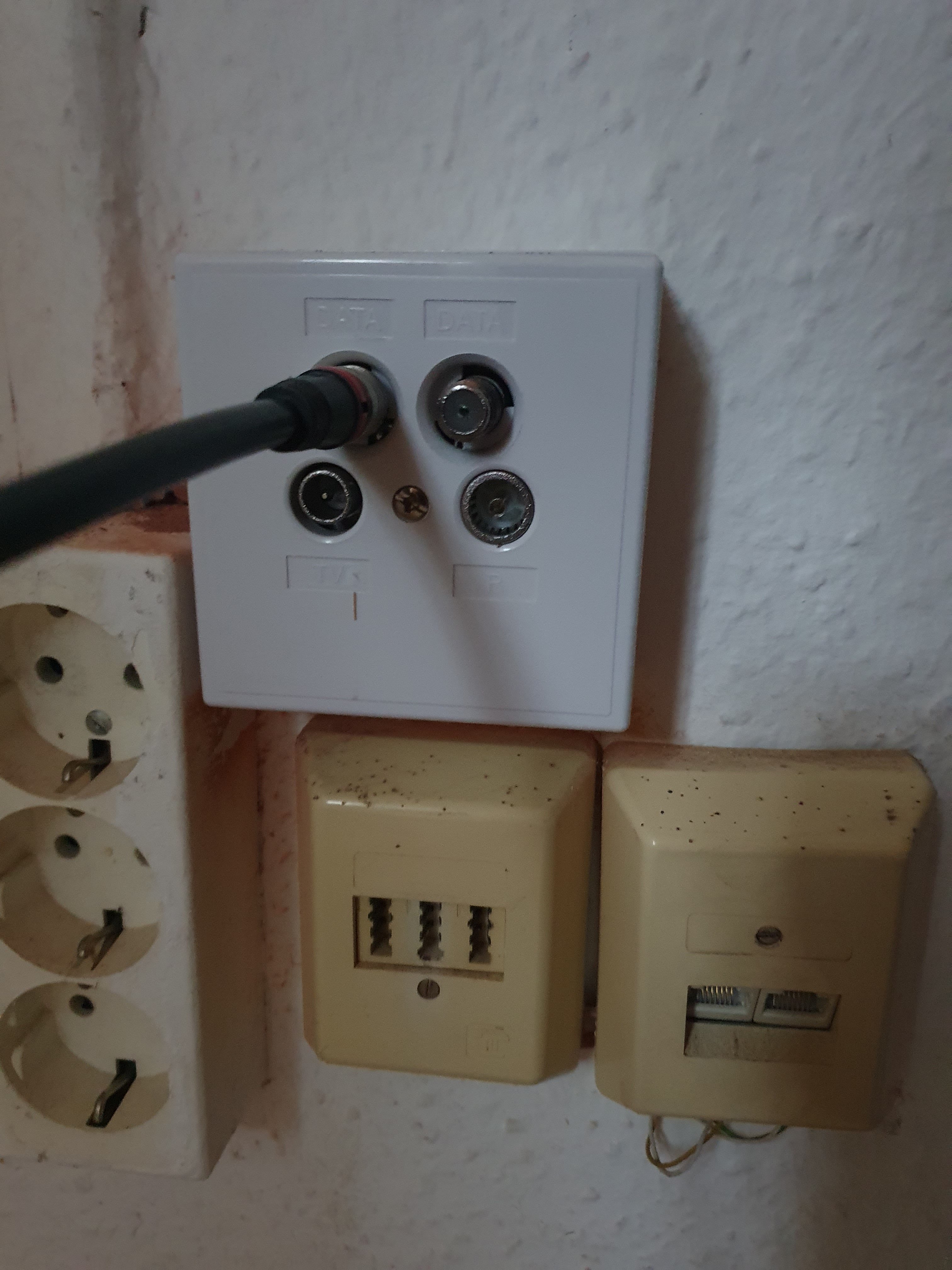 ich habe eine Frage bezüglich der Verbindung zweier Gebäude mit dem Ziel in Beiden einen zufriedenstellenden Internetzugang zu gewährleisten. Im Hauptgebäude befindet sich ein Unitymediaanschluss, welcher momentan das 25 m entfernte Nebengebäude mittels Wlan und eines Repeaters mit Internet versorgt. Leider ist die Verlustrate sehr hoch, so dass von 400 Mbit nur knapp 15 Mbit im Nebengebäude ankommen. Die beiden Gebäude haben jeweils einen eigenen Stromkreislauf waren aber vor Jahren über eine ISDN-Anlage verbunden. Bei der Installation bzw. bei der damaligen Verlegung wurde vorsorglich auch ein Leitung (anscheinend ein Koaxialerdkabel für einen möglichen Kabelanschluss im Nebengebäude) zwischen den beiden Gebäuden privat verlegt und im Nebengebäude ein Hausübergabepunkt (WISI XU 51) installiert, in welchem das eine Ende des Koaxialerdkabels führt (Bild 2). Das andere Ende des Kabels (Bild 1) befindet sich unangeschlossen an der Hauswand des Hauptgebäudes. Ich würde nun gerne über diese vorhandene Leitung das Nebengebäude mit Internet versorgen. Wie gehe ich da am Besten vor bzw. was muss ich da beachten?