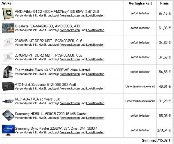 Wie im Topic schon geschrieben soll mit der Kiste eigentlich nur im Internet gesurft, ein bissl geschrieben und ein bissl Bildbearbeitung betrieben werden. Ach ja und zusätzlich noch Fotoshow DVD's ertellt werden. Das ganze soll für diese Zwecke dann aber auch ein paar Jahre noch ausreichen.