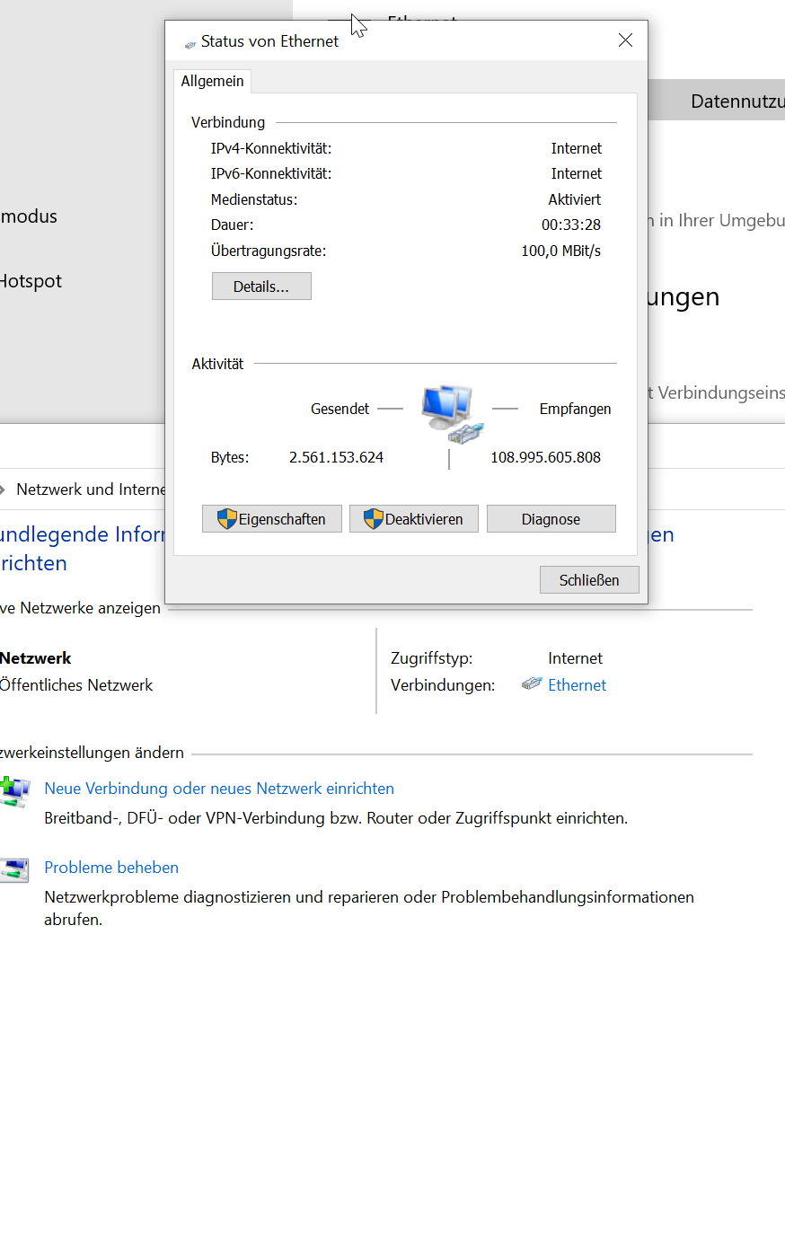 Vor den Stromausfall hatte ich immer ein Super Verbindung von 250 mbits, aber danach, wenn ich unter mein Windows 10 unter Ethernet klicke, steht an meiner Übertragungsrate 100 Mbit/s, ich war erstmal verblüfft und so fühlte es sich auch an. Hab mit Telekom geredet, sie sagen, es läuft alles gut, aber wir schicken ihnen neuen Router zu etc. Aber das haben sie bis dahin nicht gemacht, dann hab ich selber nochmal probiert, woher der niedrigen Übertragungsrate kommt, bin auf Problembehandlung gegangen, dann ging es, aber nach kurzer Zeit wieder 100 Mbits gedrosselt. Ich wusste nicht mehr weiter, dann hab ich mein LAN Kabel zwischen PC und Anschlussdose aus und eingesteckt, dann ging es wieder ist auf 1 Gb hoch, aber es geht nicht mehr, weil ich nur 250 Mbits bezahle. Seit dem kommt es vor, dass es herunterdrosselt, aber immer, wenn ich aus und einstecke, geht es dann.