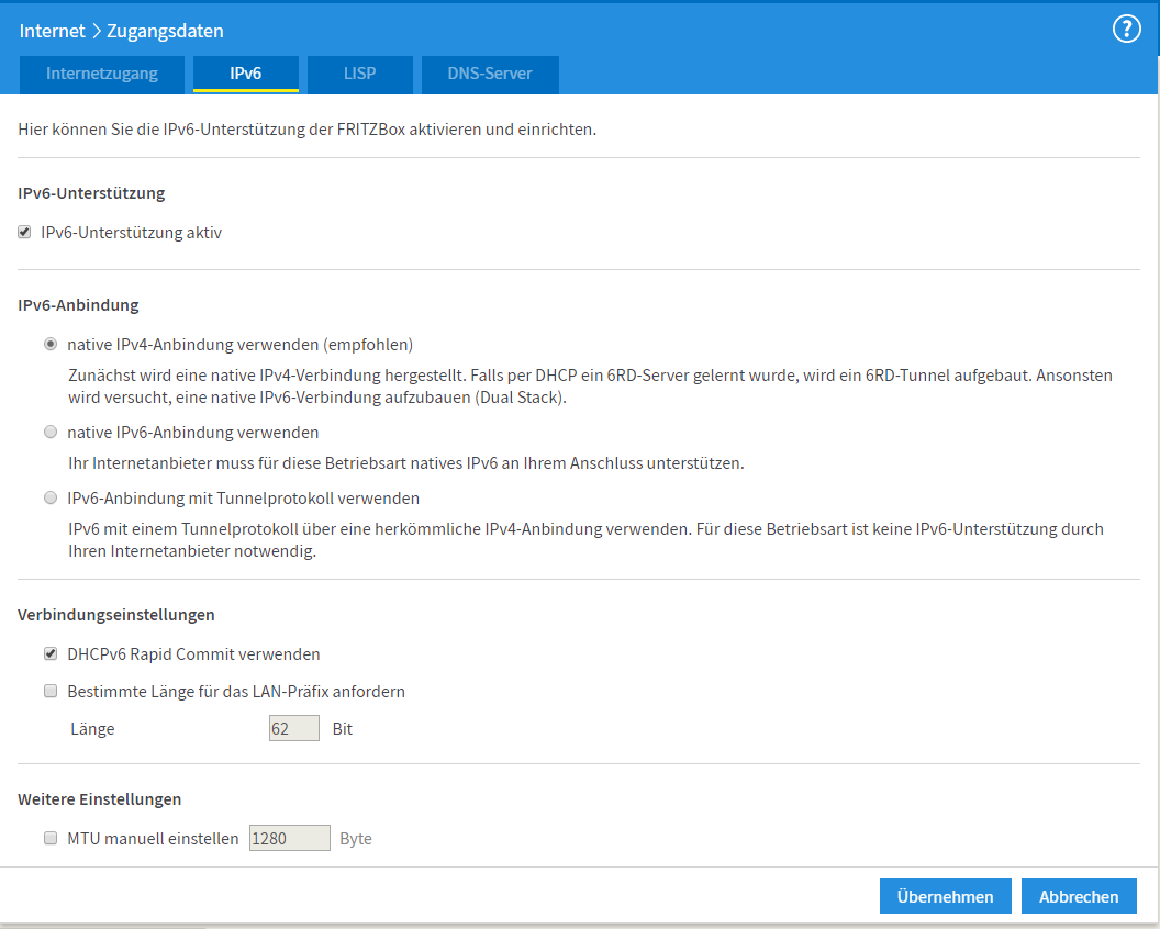 Ob IPv6 oder nicht hat nix wirklich mit Geschwindigkeit zu tun.