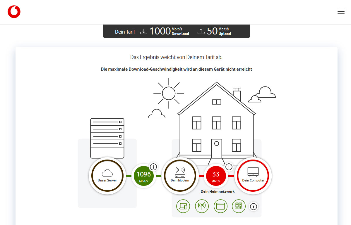 Seit ich den Tarif geupgraded und die FRITZ!Box habe, erreiche ich eigentlich nie, die 1 Gbit. Nicht einmal annähernd.