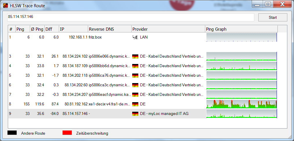 Wenn ich mir eine Traceroute angucke sehe ich auch genau dass das Problem nicht in meinem Netzwerk, sondern soweit ich das sehe an der Verbindung zwischen CIX und Kabeldeutschland. Seht ihr das auch so? (siehe screenshot)