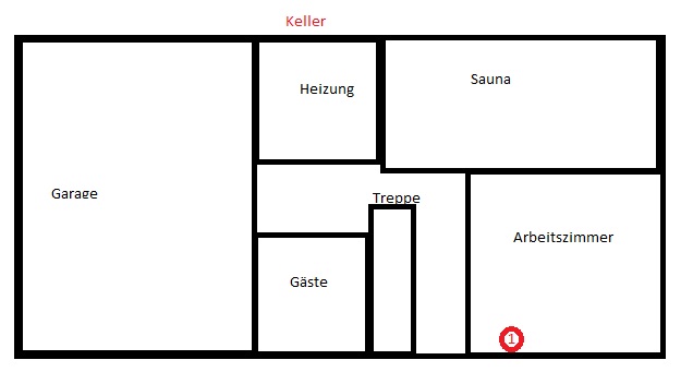 Auf Bild1 ist der Keller. Bei Punkt 1. kommt der Glasfaseranschluss ins Haus. Von dort geht ein Lan-Kabel (alle unterputz mit Lan-Steckdose) ins 1.OG zu Punkt 2.