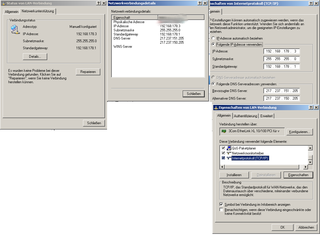 Wer sich jetzt fragen sollte, wie ich dann diesen Text verfassen kann: Das schwarze Kabel steckt jetzt wieder im PC an dem ich sitze, direkte Internetverbindung, laeuft.