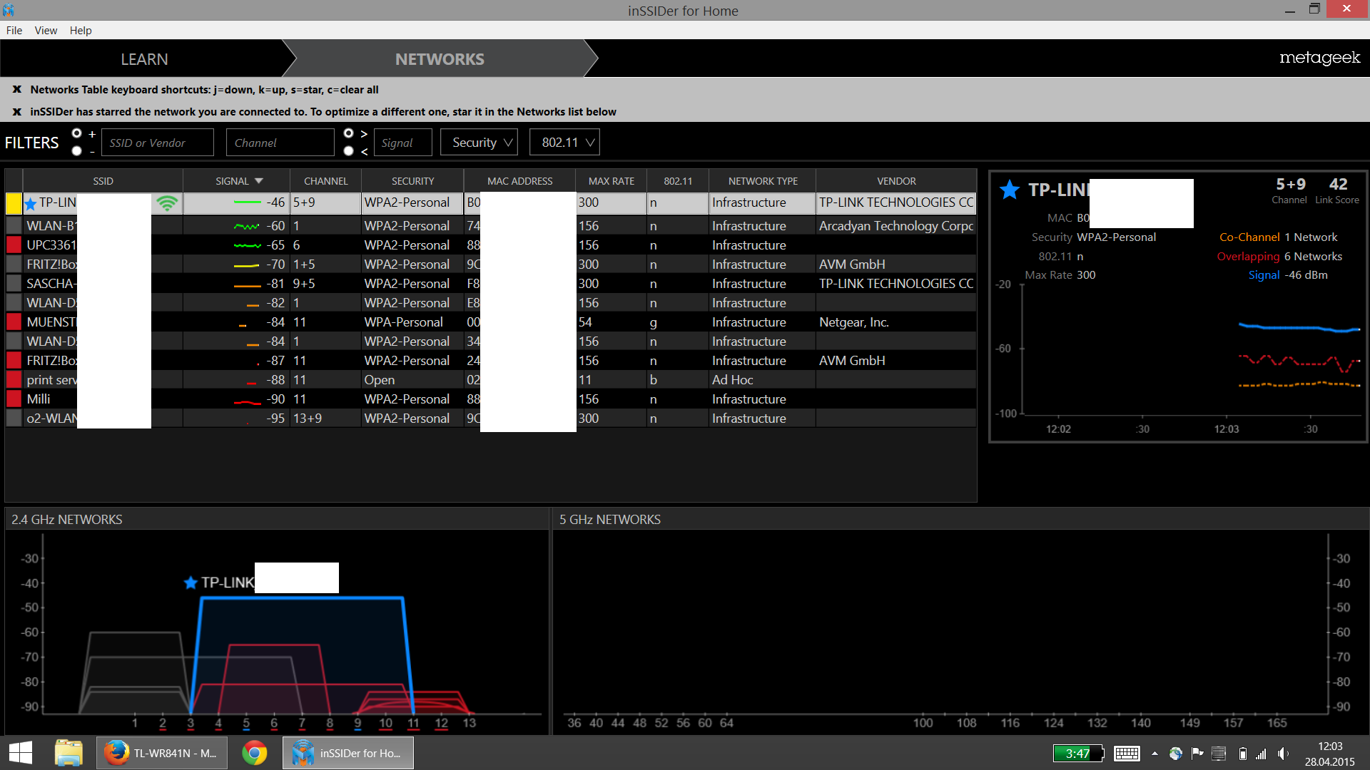 Hier ist ein Bild der WLAN-Netzwerke in meiner Umgebung: