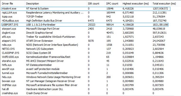 Um das eventuelle Treiberproblem einzugrenzen habe ich mit LatencyMon eine Analyse durchgeführt: