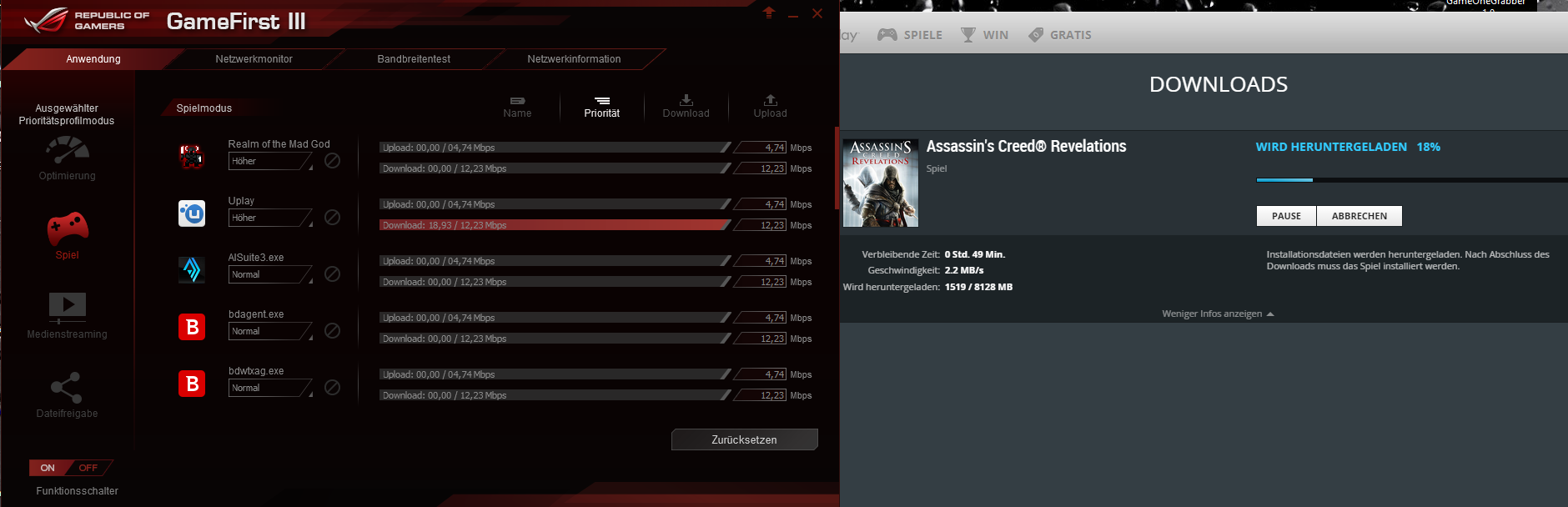 Gerade eben lade ich bei Uplay wieder etwas herrunter mit 2,8 aber ein anderes Programm sagt Uplay zieht 12 ;B an Download. Aber wie kann das sein 12 MB ziehen und 2,8 Mb kommen an ??