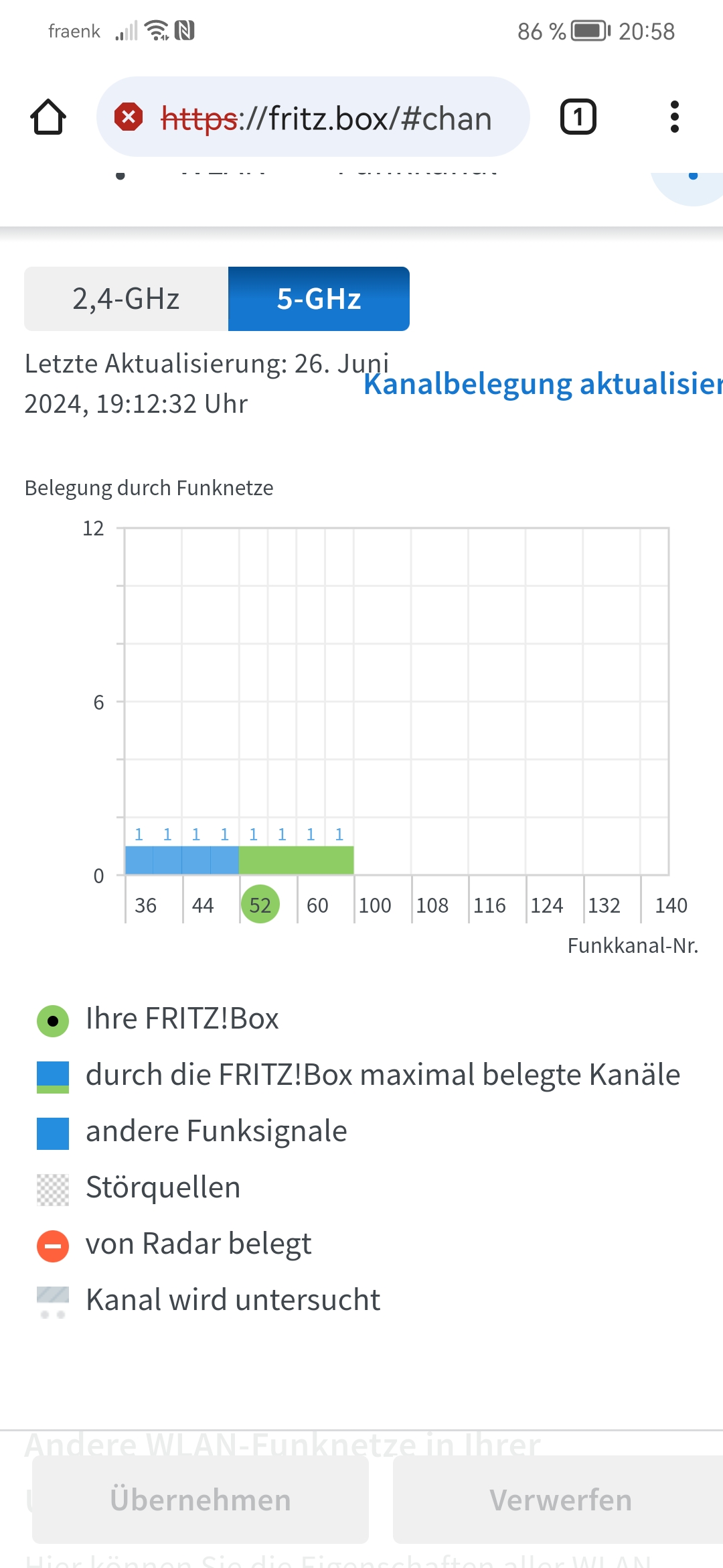 Eindeutiger geht es doch gar nicht.Nochneuhier schrieb:5-GHz-Band für 1 Min. auf dem gewählten Kanal 100-112 (Frequenz 5.500-5.560 GHz) nicht nutzbar wegen Prüfung auf bevorrechtigten Nutzer (z.B. Radar).