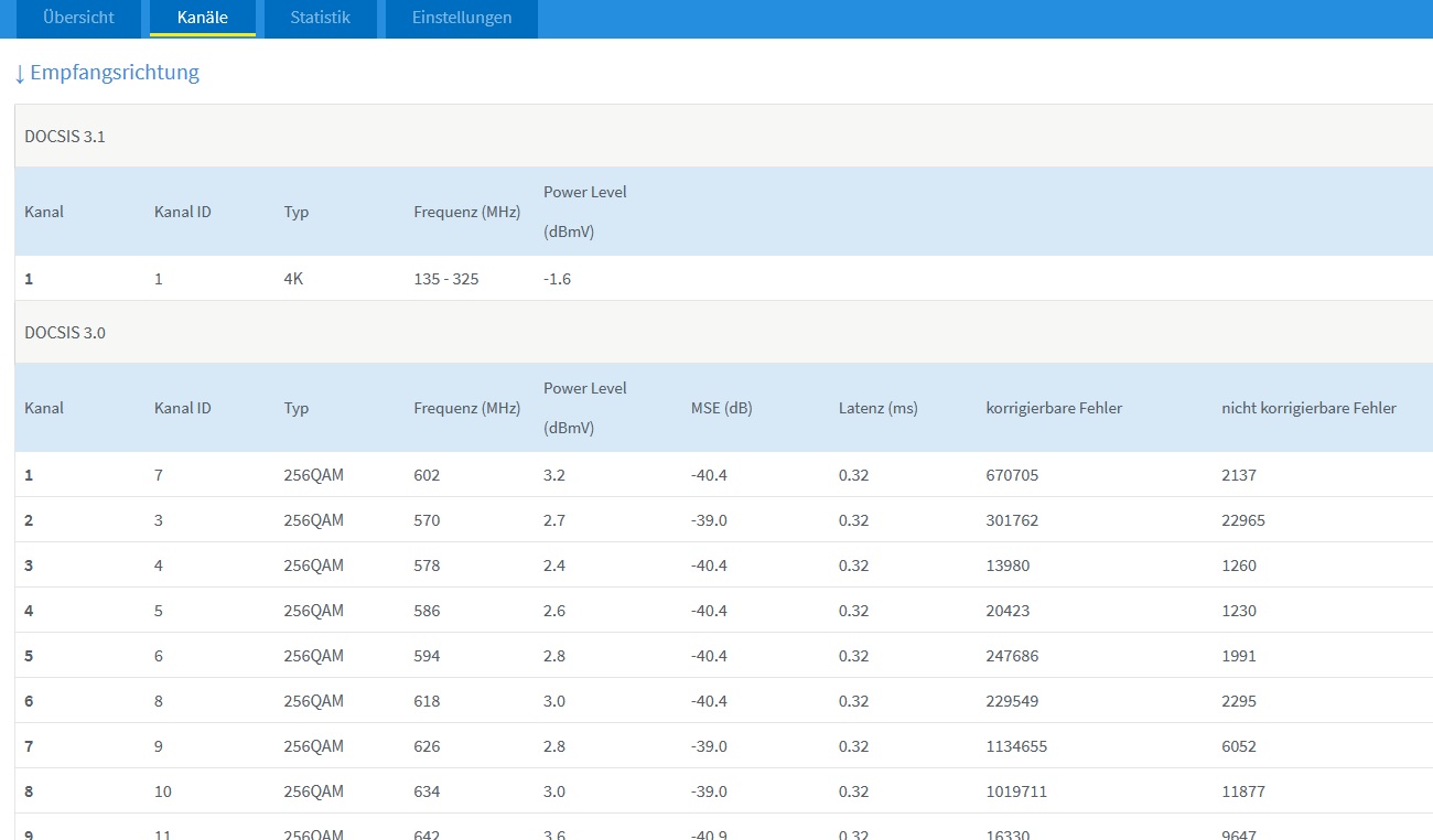Pegelwerte des Modems bitte: