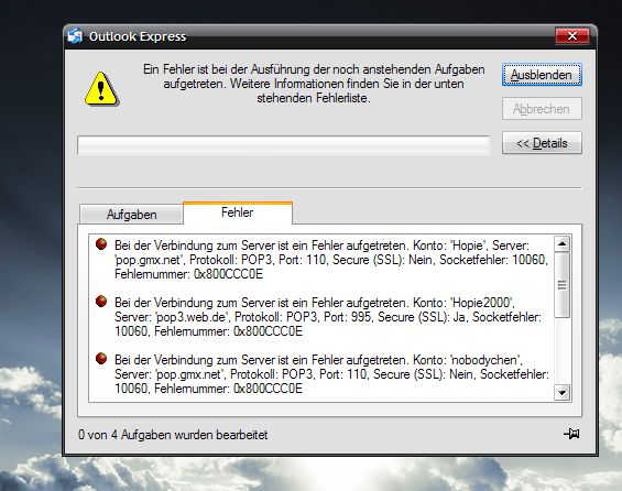 zu meinem problem. ich kann unter outlook express keine emails mehr abrufen.