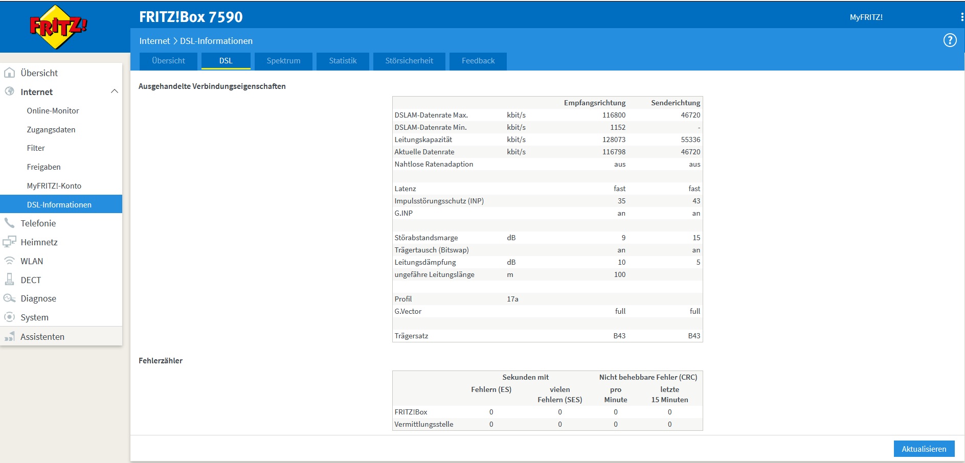 Im Juli 2018 bin ich umgezogen und habe bei 1&1 einen DSL-Vertrag über 50MBit/s abgeschlossen. Da bei uns keine 50MBit/s ankommen, sondern nur 25MBit/s down und 5MBit/s up, wurde seitens 1&1 ein entsprechendes Profil - so nannte man es - für meinen Anschluss hinterlegt. Letztgenannte Werte wurden mir in meiner FB 7490 unter "Anschluss" und "Verbindung" angezeigt. Alles lief, soweit so gut.