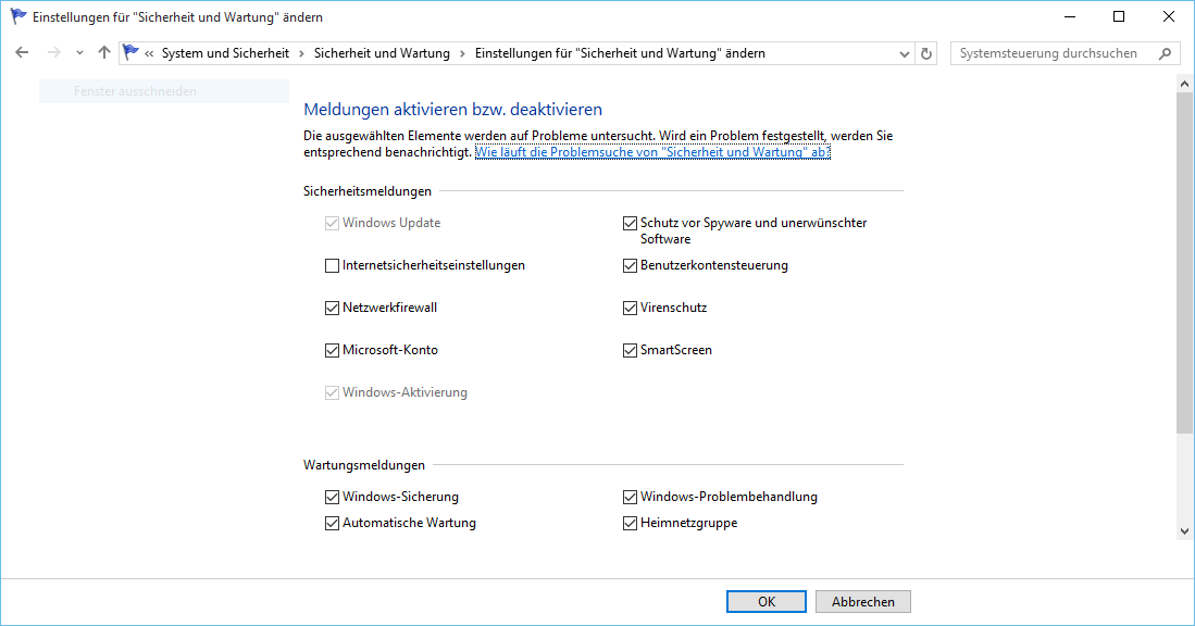 Den Windows Defender habe ich, als ich auf Windows 10 geupgraded habe, ausgeschaltet, da ich ja sowieso avast verwende. Zudem gibt es ja beim Ausführen einer .exe-Datei immer eine Sicherheitswarnung, dass die Datei von einer fremden Quelle stammt. Da diese Meldung eigentlich nur unnötig ist, habe ich diese ebenfalls deaktiviert. Das wird der Grund für die Meldung sein. Aber es muss ja irgendwie möglich sein, solche Benachrichtigungen gezielt zu deaktivieren.