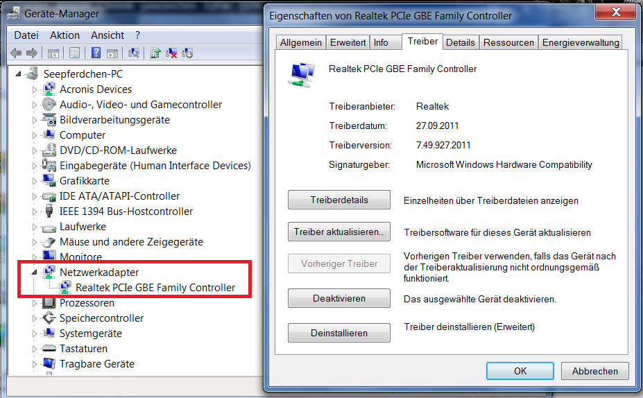 Was sagt der Gerätemanager zum LAN Adapter ?