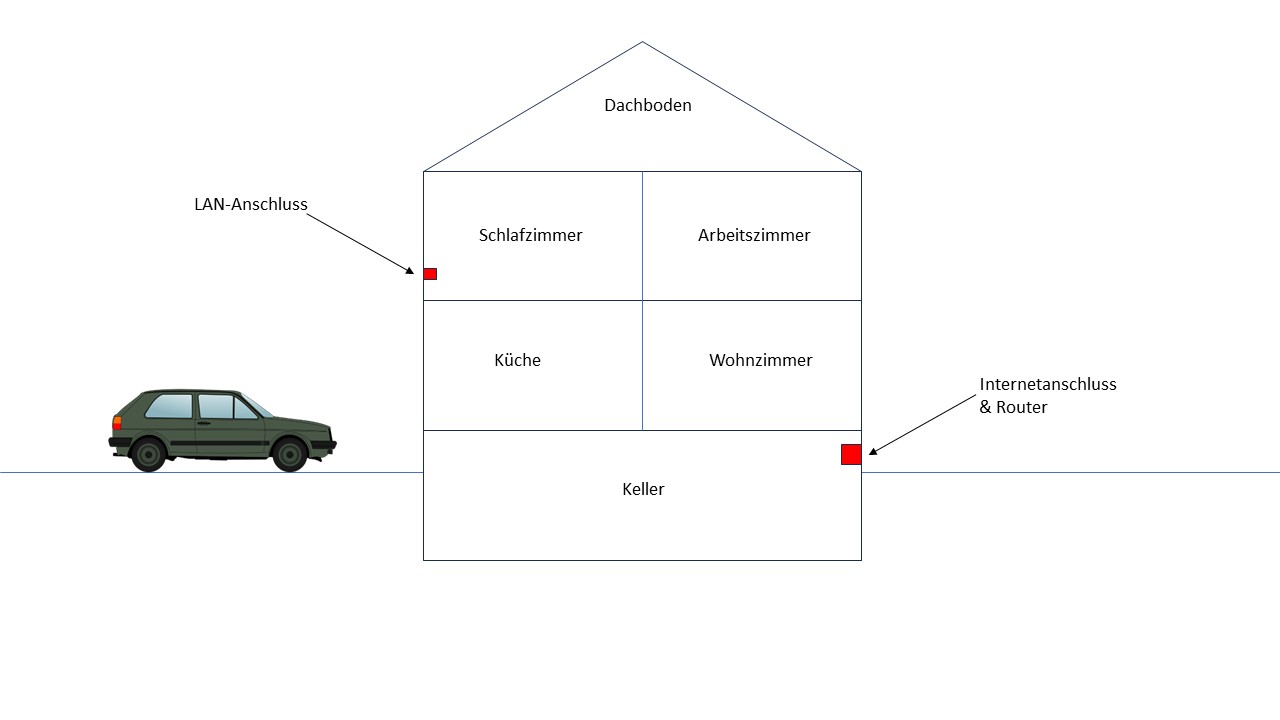 ich bin kürzlich in ein Miethaus gezogen und möchte gern meine Internetverbindung im Arbeitszimmer (Obergeschoss) verbessern. Der Internetanschluss ist im Keller und da ist auch der FRITZ!Box Router platziert. Es gibt im Schlafzimmer einen LAN-Anschluss direkt zum Router im Keller. Leider ist so ein Anschluss nicht im Arbeitszimmer vorhanden. Aufgrund der Mietsituation möchte ich auch keinen neuen Anschluss im Arbeitszimmer einbauen. Zumindest stell ich es mir aufwändig vor.