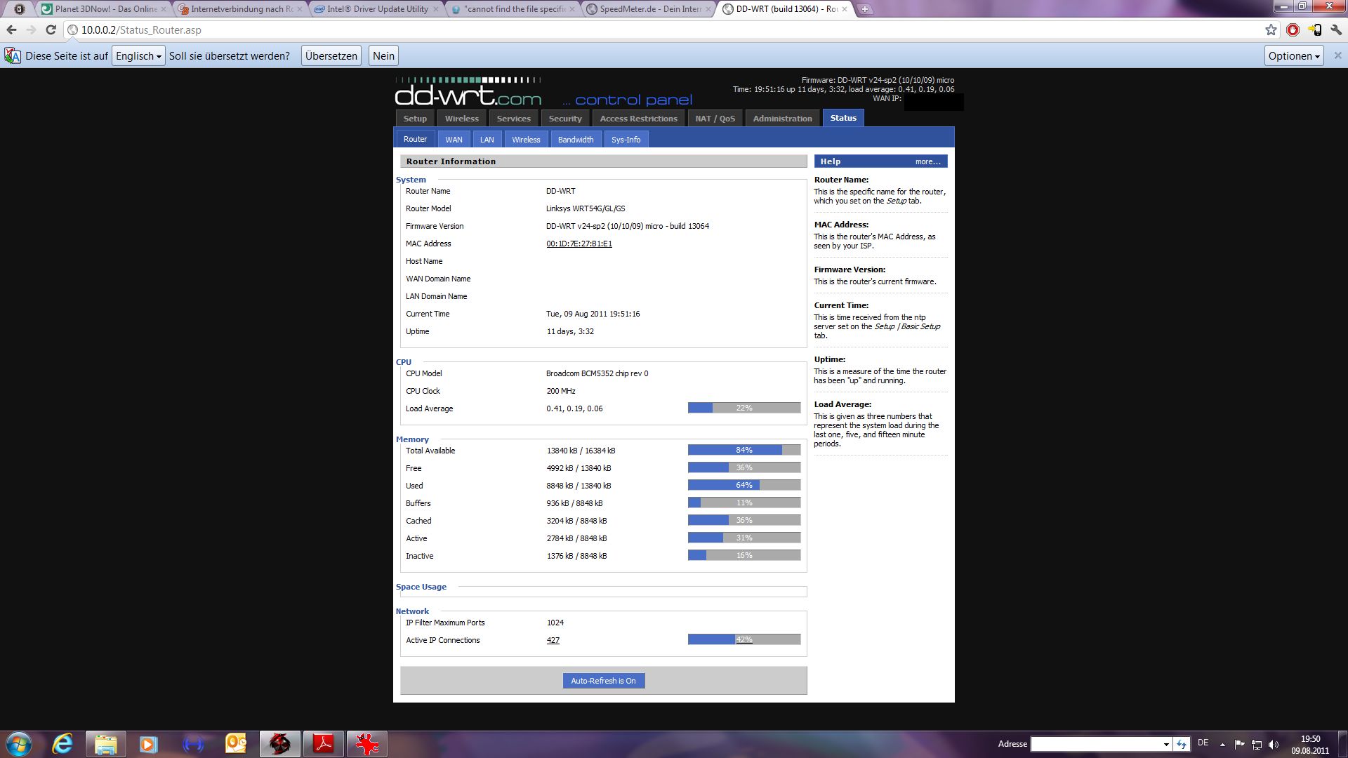 Aber ich muss Yidaki schon recht geben, selbst für D LInk sollte das alles im machbaren Rahmen liegen. Siehe Screen von meinem Router mit Speedmeter.de - Ein WRT54GL welcher Hardware-technisch ein altes Eisen ist.