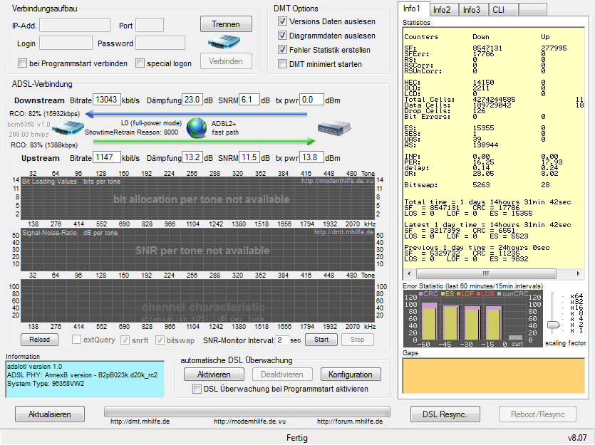 Dank des Broadcom Chipsatzes keine Syncverluste mehr trotz mieser Leitung.