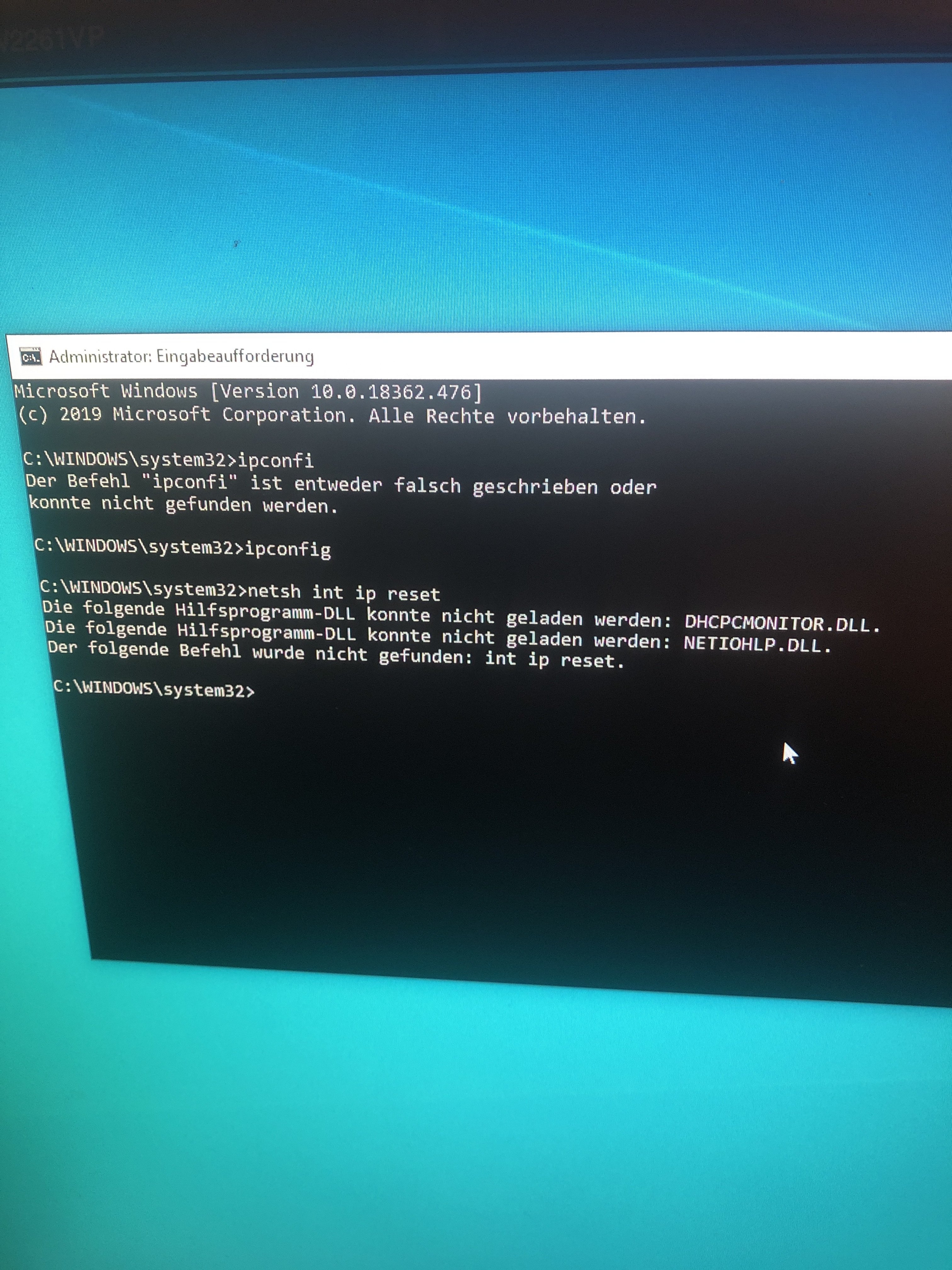 Auch dass ich in command Fenster netsh nicht ausführen kann hängt damit zusammen.