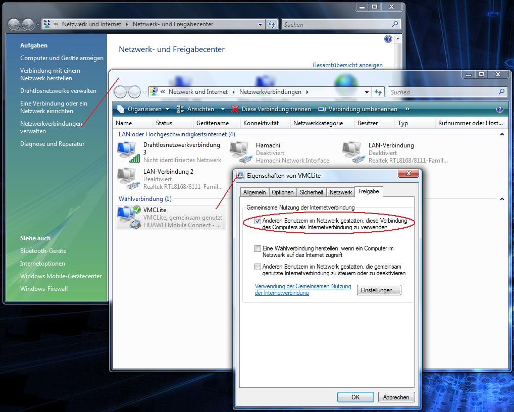 Nun würde ich gern meine X-Box mit dem Vista-PC verbinden und darüber auf's Internet zugreifen können. Wie mache ich das? Ich kenne mich bei Windows Vista nicht aus... was muss ich beachten, um erfolgreich die Internetverbingungsfreigabe zu aktivieren?