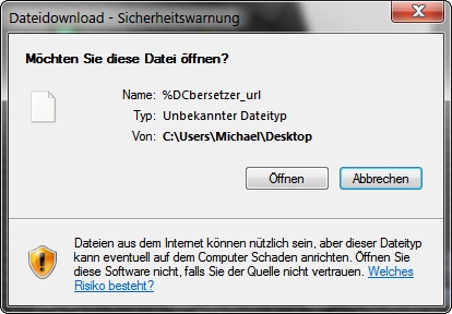 Im Fenster steht was von "unbekannter Dateityp" , hat es was damit zu tun?