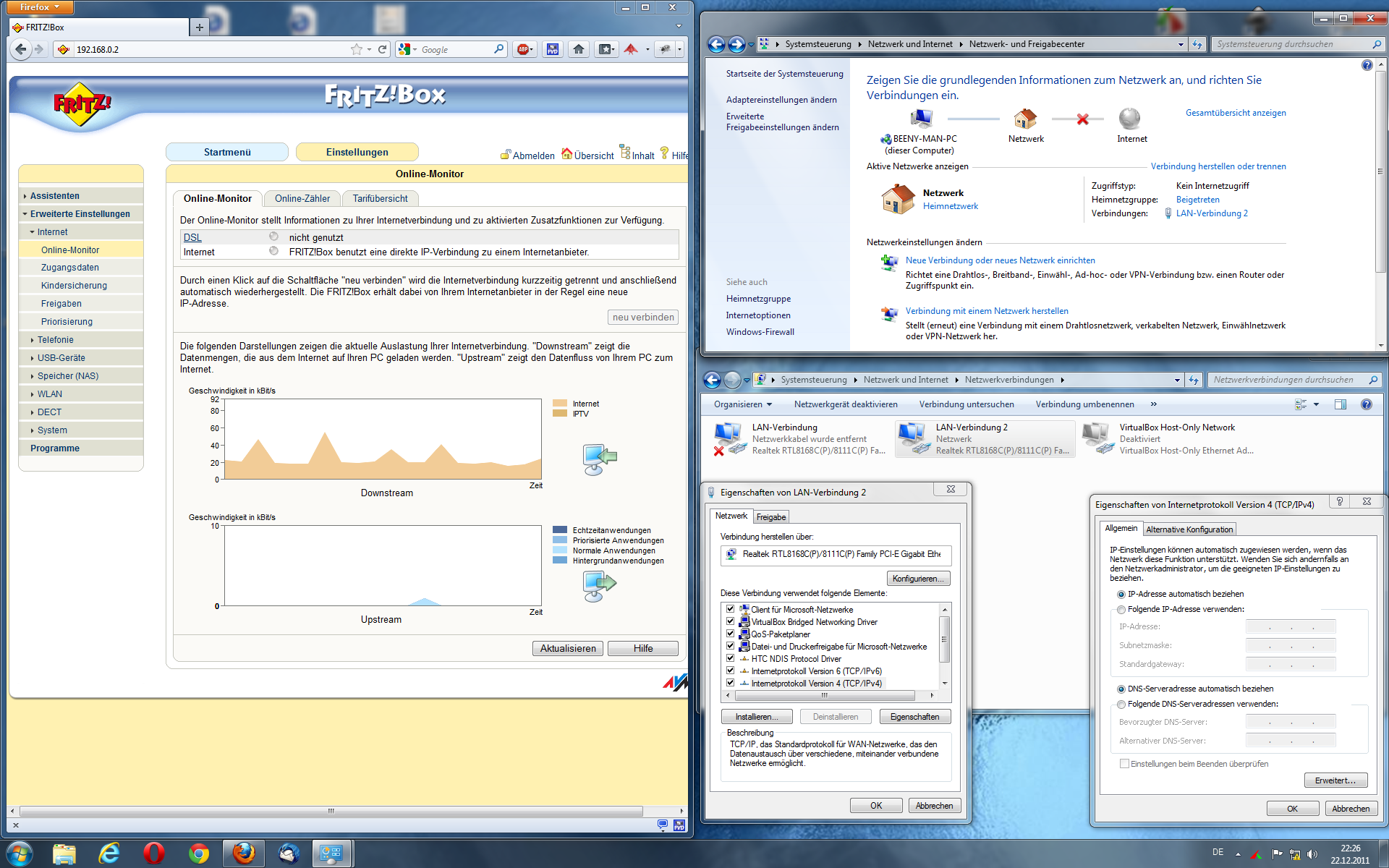 2. Die FB vergibt jetzt sinnvolle IPs an die Rechner: 192.168.0.20 bzw 21