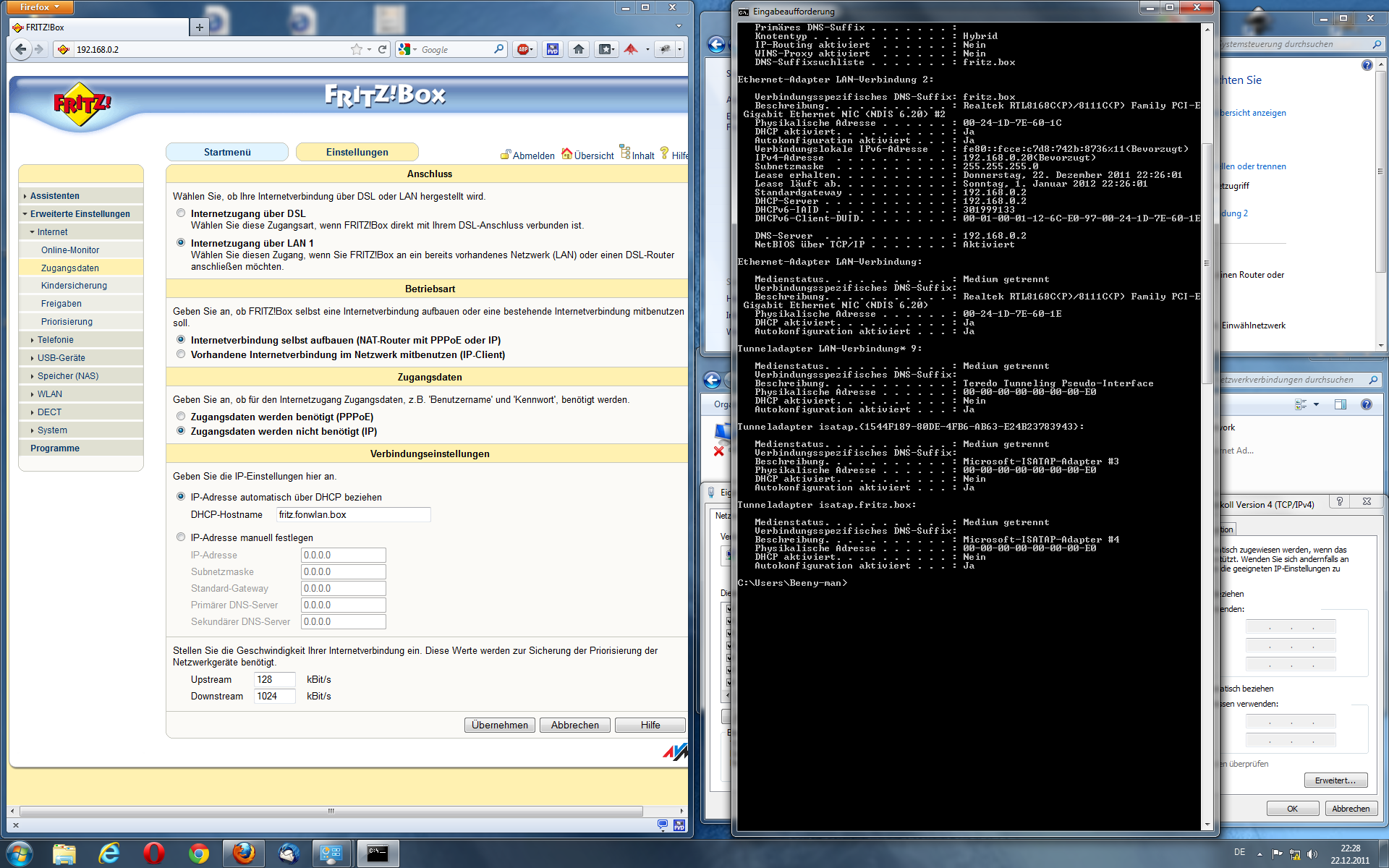 Verbinde ich den PC dagegen wieder mit der FB ergibt ipconfig: