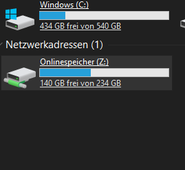 Nun habe ich den Olinespeicher als Laufwerk in Win10 eingebunden mit Buchstabe. Es werden aber nur 235Gb freier Speicher in Windows angezeigt obwohl ich ja 1Tb habe.