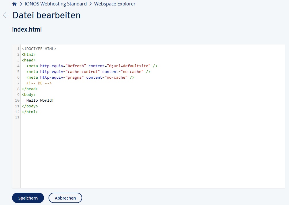 Dort habe ich einen ganz einfachen Hello World! HTML-Text abgelegt.